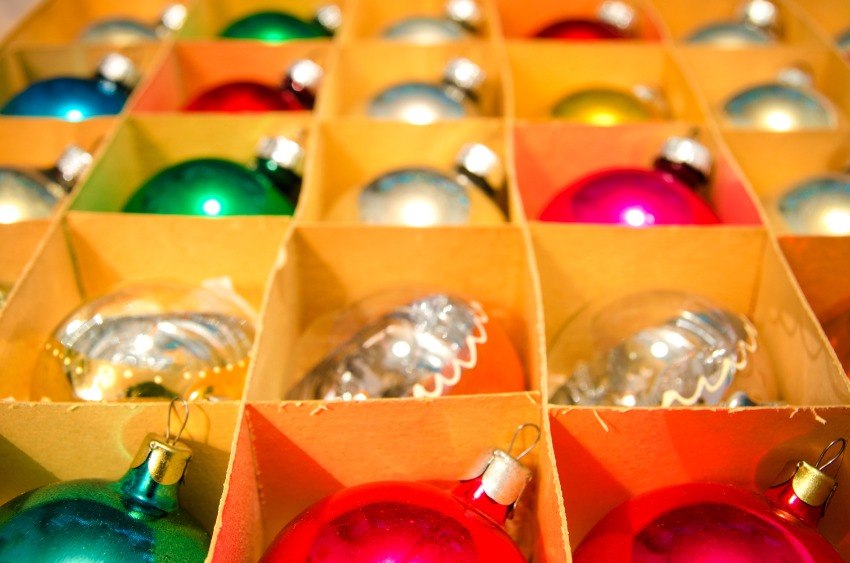 - Store Christmas ornaments by colour themes