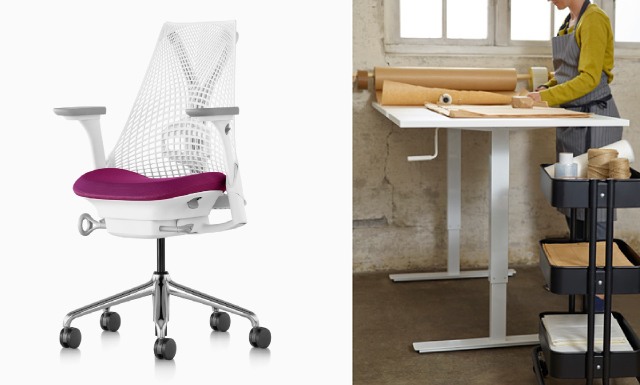 - A sit/stand desk: If you’re experiencing aches from sitting too long, you can always give standing desks a try. Some perks of standing desk include a lower risk of weight gain, reduced back pain and improved energy levels. You can also purchase a 2-in-1 stand/sit table from IKEA that comes with adjustable heights based on your preferences.