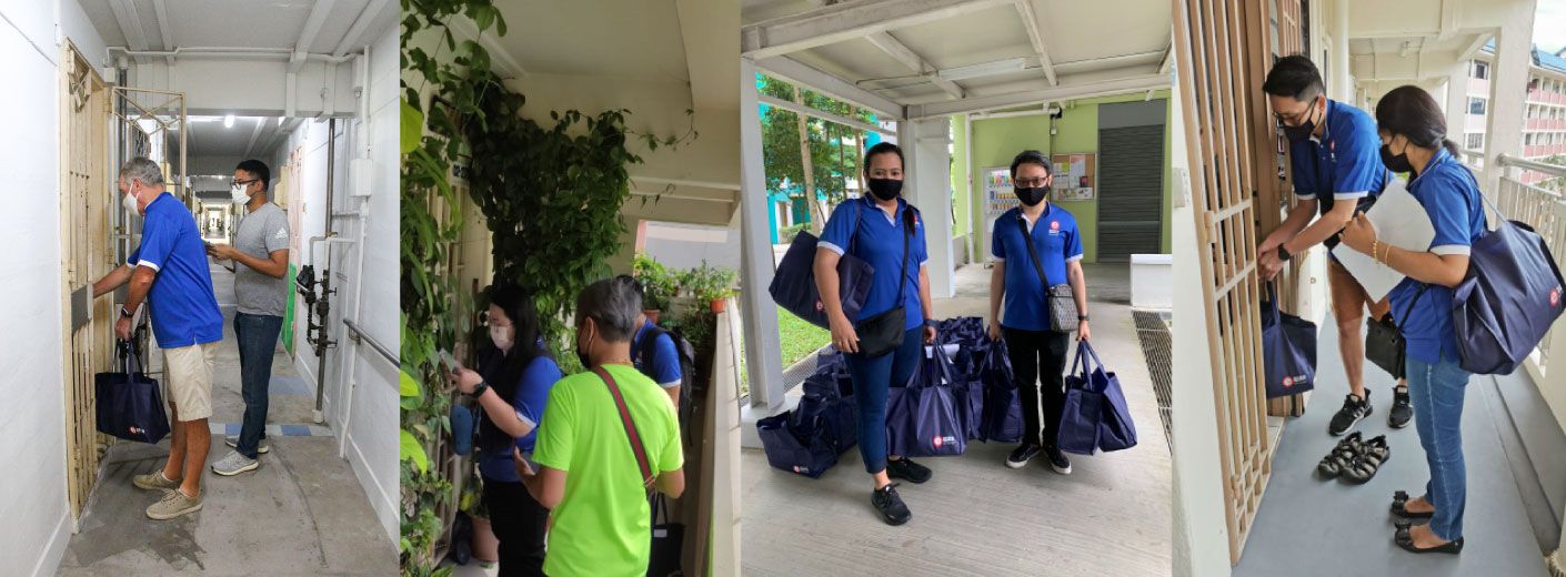 Image: Extra Space Asia’s staff assisting in the distribution of the care packs to the various households.