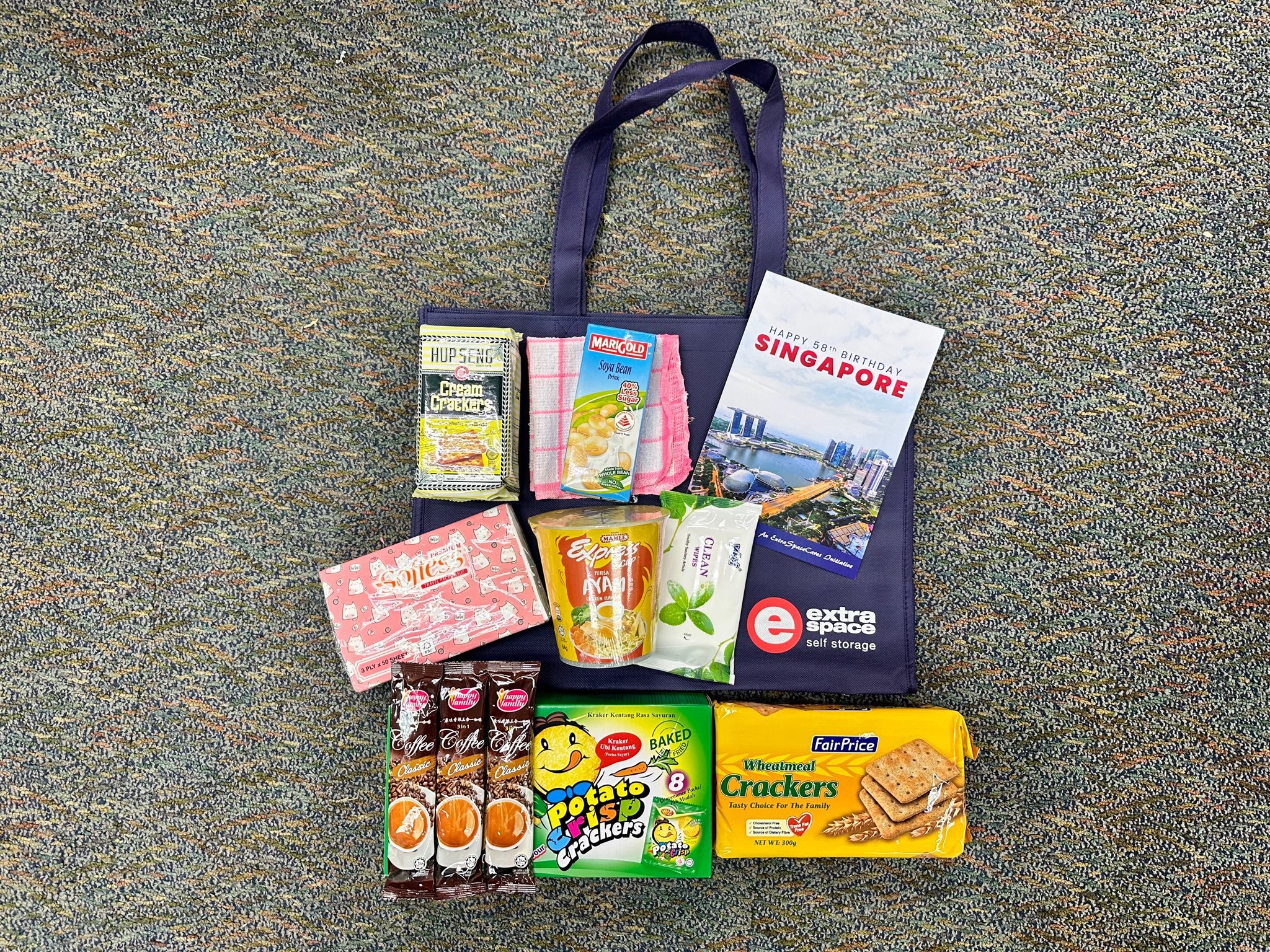 Every care pack is thoughtfully curated to bring comfort and happiness to the elderly recipients. Filled with nutritious food items, delightful treats, and essential hygiene products, these care packs are designed to cater to the specific needs of our senior citizens. To promote sustainability and eco-consciousness, all items are carefully packed into reusable tote bags, proudly adorned with the Extra Space Asia brand.